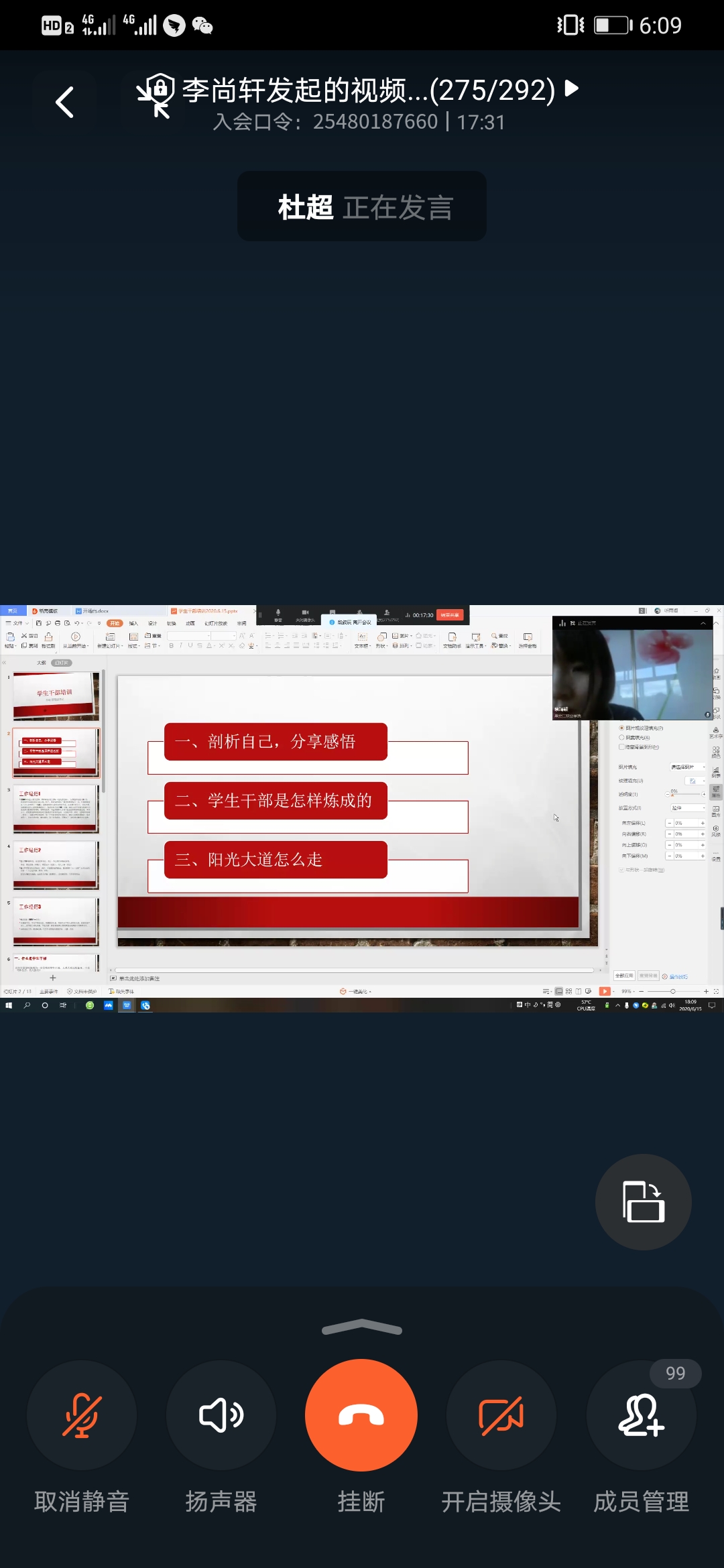 讲座上,杜超老师围绕着自己亲身经历,丨从“剖析自己,分享感悟”,“学生干部怎样炼成”,“阳光大道怎么走”三个方面给同学们展开了精彩且吸引人注目的课堂。阐述了自己的工作经历,并结合实际情况告诉同学们如何能当好学生干部并要求同学们做到“四个要”“四个法”。