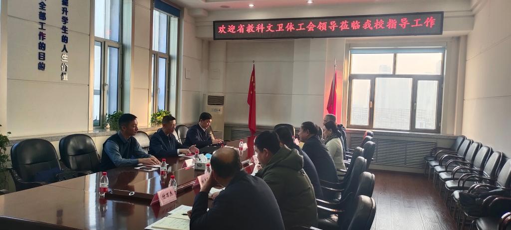 会上,吕光英从归口后工作对接、工会工作主线、工桥通业等几个方面介绍省教科文卫体工会本次调研主要内容。赵继会对学校基本情况和特色办学进行介绍。我校是隶属教育厅的高等职业教育学校,学校的职能为高职教育、成人学历教育和社会培训,在校生数量庞大,师资力量雄厚,专业设置齐全,是国家骨干院校建设优秀单位、国家优质院校,目前“双高”正在建设过程中,荣获全国高职50强、黄炎培优秀学校奖等多项殊荣,在人才培养、就业及技能大赛等多方面取得优异成绩、作出突出贡献。学校践行“铺路石”文化理念,在做好“产业的推进器、学生的铺路石、百姓的圆梦者、文化的传承人”的基础上,不断探索特色办学发展。运用“一转、两建、三改”方法,大力开展教育教学改革;弘扬“铺路石”文化建设,遵循“自强有为、兴业报国”的“龙职”精神,把当好学生的铺路石作为学校核心价值理念;强化“龙职”品牌建设,着力打造“龙职风格、中国特色、世界水平”的高职院校。学校对工会工作高度重视,加大投入力度,工会组织逐渐壮大,从人员配备到各项工作开展正在全面完善,工会组织是凝聚教职工力量、维护教职工权益的“职工之家”,学校工会一定按照上级组织的统筹安排和部署,贯彻落实好各项工作,更好的为广大教职工提供高质量服务。