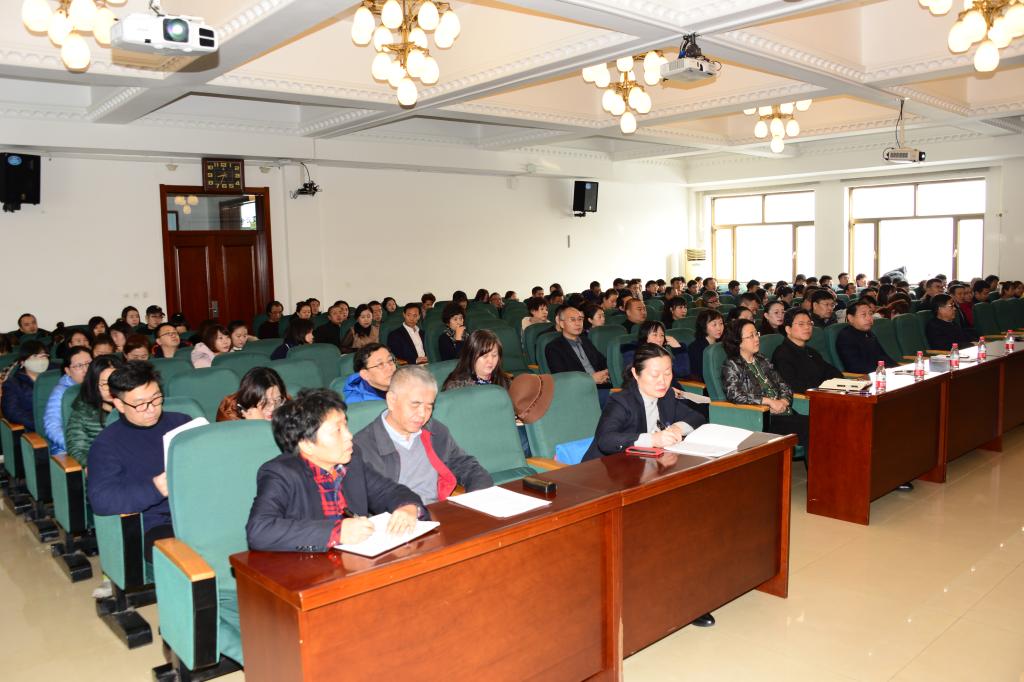 王明海首先从诊改工作的由来、学校试点开展的主要工作和诊改复核工作三个方面给与会人员进行培训。重点对诊改相关概念、复核需要达到的标准进行详细讲解,对近期诊改工作和国家诊改委进校复核工作进行部署。
