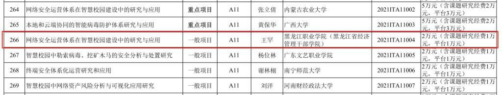 二是由我校现代教育技术中心申报的《网络安全运营体系在智慧校园建设中的研究与应用》项目,获批教育部科技发展中心2021年中国高校产学研创新基金“新一代信息技术创新项目”,这是我校首次立项教育部科技创新类基金项目。