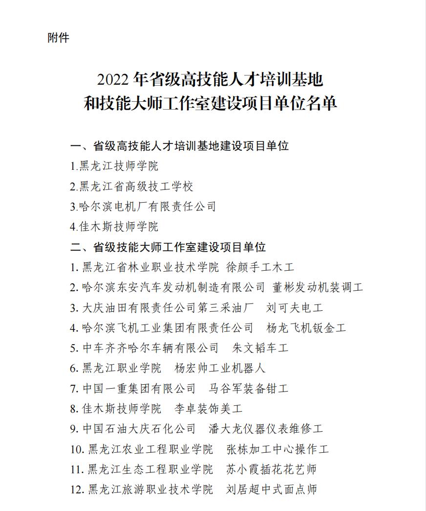 2022年度黑龙江省人力资源和社会保障厅“技能大师工作室”建设项目评审工作圆满完成,我校智能制造技术学院“杨宏帅技能大师工作室”名列其中。