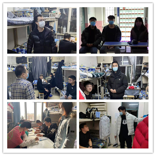 开展精准服务 用爱升华师生情。教师深入寝室后,着重为学生们讲解了疫情防疫政策和要求,教导学生配合防疫工作,做好安全防护,引导学生树立抗疫必胜的信心。对于学生在寝室的学习生活情况,教师们也格外关心,提醒学生们要养成和保持良好的生活习惯,按照寝室标准化要求整理寝室内务,共同营造干净整洁的生活环境。针对个别学生学习主动性不强的问题,教师则通过讲经历、谈经验、给建议的方式来帮助他们,鼓励学生珍惜青春时光,努力学习回报社会。教师的爱生之情,还体现在一声声嘘寒问暖中,有的老师看到起床晚的学生时,会督促学生“早睡早起,别熬夜”;有的老师看到学生身体瘦弱时,会劝说学生“加强体育锻炼,增强体质”;有的老师看到学生穿着单薄的衣服外出时,会提醒学生“天冷加件衣”,朴素的话语中透露出教师对学生的关爱,在寒冷冬日温暖了学生们的心。