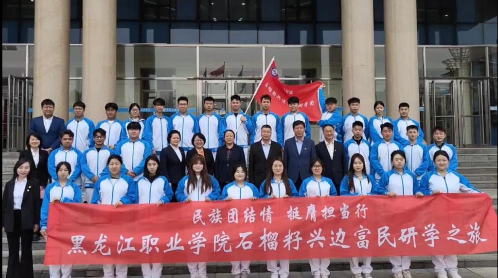 吴艳秋在致辞中强调,“石榴籽兴边富民研学之旅”是学校贯彻习近平总书记关于“铸牢中华民族共同体意识”重要论述的具体实践,是学校落实国家《兴边富民行动“十四五”规划》的破冰之举。学校站在服务国家边疆治理的战略高度谋划工作,立足十八站鄂伦春民族乡的生态资源优势,将研学过程转化为国情教育的生动教材,坚持把思政小课堂同社会大课堂相统一,在社会生活中,回答好“行走的思政课”怎么讲、谁来讲、在哪讲等现实问题,切实提升实践育人的针对性和实效性。希望全体研学成员,在驿道的马蹄印里读懂家国情怀,在鄂族长者的皱纹中感受文化根脉,在边疆振兴的实践中淬炼青春本色。期待大家带着“沾泥土”“挂露珠”“冒热气”的研学成果凯旋,为学校“双高”建设注入新的青春动能。