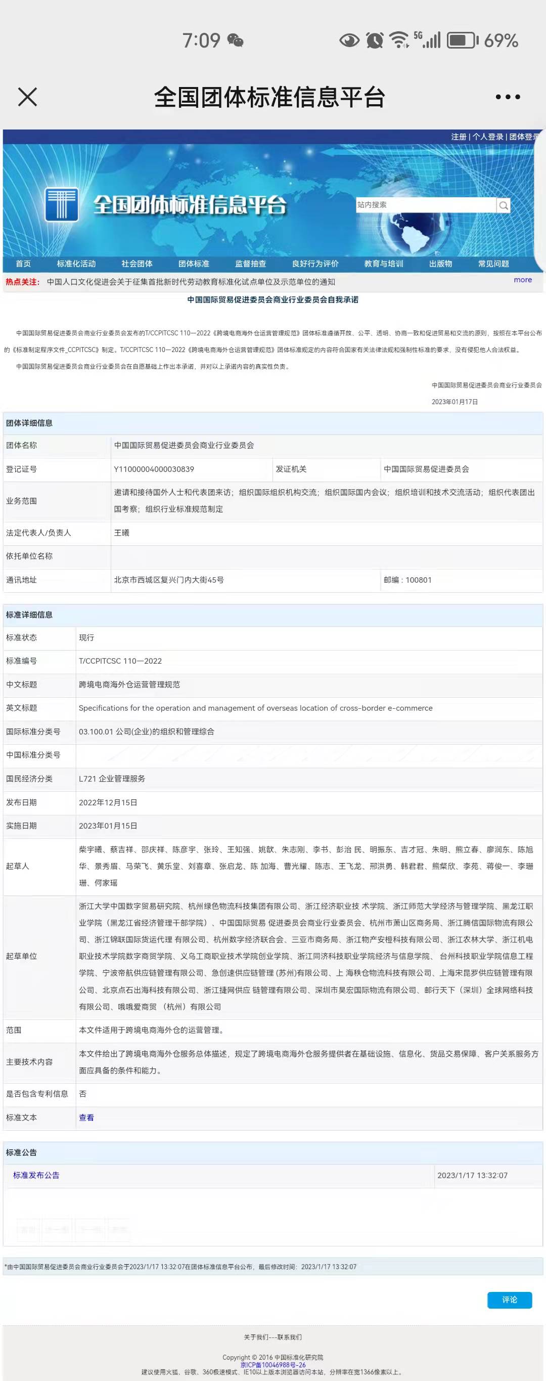 1月17日,我校参与起草的“跨境电商新业态新模式运营管理规范”系列三项国家团体标准《跨境电商独立站运营管理规范》(T/CCPITCSC 109—2022)、《跨境电商海外仓运营管理规范》(T/CCPITCSC 110—2022)、《跨境电商平台店铺运营管理规范》(T/CCPITCSC 111—2022)在全国团体标准信息平台(http://www.ttbz.org.cn/)正式发布。本次发布的国家团体标准项目由浙江大学中国数字贸易研究院牵头制定,中国国际贸易促进委员会商业行业委员会立项管理。