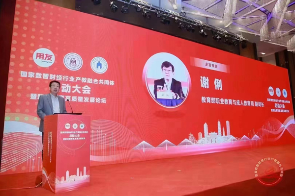 国家数智财经行业产教融合共同体由全国工商联人才交流服务中心、中国商业会计学会指导,用友网络科技股份有限公司、上海财经大学、山西省财政税务专科学校牵头成立。来自全国400余家理事单位的700余位嘉宾参加启动大会。我校成功当选“产教融合共同体”副理事长单位。