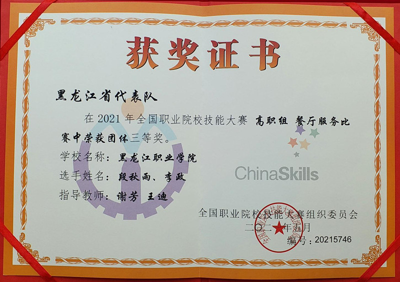 6月21日,全国职业院校技能大赛高职组“餐厅服务”赛项顺利举办。在指导教师谢芳和王迪带领下,我校酒店管理专业参赛学生段秋雨、李政凭借扎实的理论功底、娴熟的专业技能、精准的操作规范和良好的临场发挥,荣获本届大赛团体三等奖,赢得现场专家评委一致认可与好评。