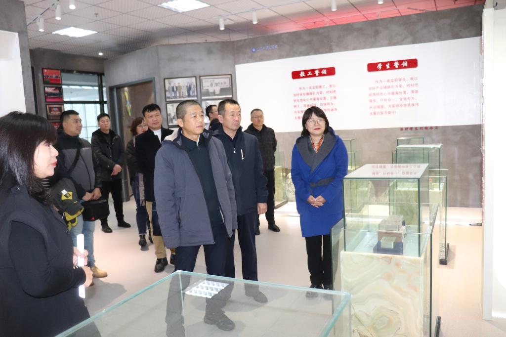 于波一行首先参观学校铺路石文化中心,充分了解学校70年办学发展历程、办学理念、专业建设、校企合作、就业情况及“龙职”颁“龙职奖、登状元台”的文化月传承活动缩影,对学校“铺路石”文化理念给予高度肯定。