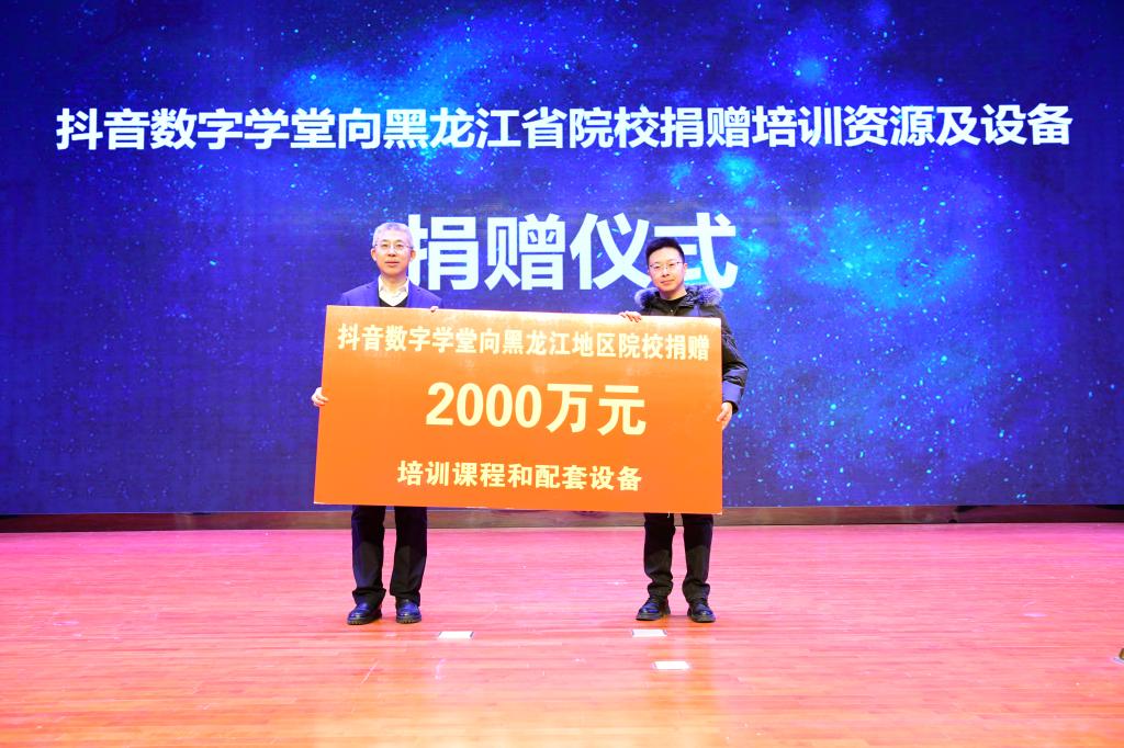 12月18日,抖音数字学堂联合火山引擎向黑龙江省院校捐赠仪式在我校举行,抖音数字学堂联合火山引擎共捐赠价值2000万元培训资源及直播设备。黑龙江省教育厅职成处、市文旅局、省旅游产业发展促进会相关领导出席仪式,校长王利文及省内二十余所高校代表参加会议。