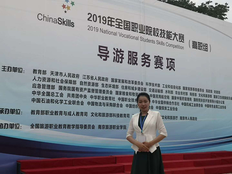 近日,2019年全国职业院校技能大赛导游服务赛项在南京圆满落下帷幕。大赛通过导游知识测试、景点导游讲解和才艺展示等多个环节进行比拼,我校2017级旅游管理专业学生刘婷、侯俣鑫在陈洪宏、于成龙两位教师的指导下,经过激烈角逐,分别荣获国赛三等奖,创造了学校在此类大赛导游服务赛项中获奖人数记录。