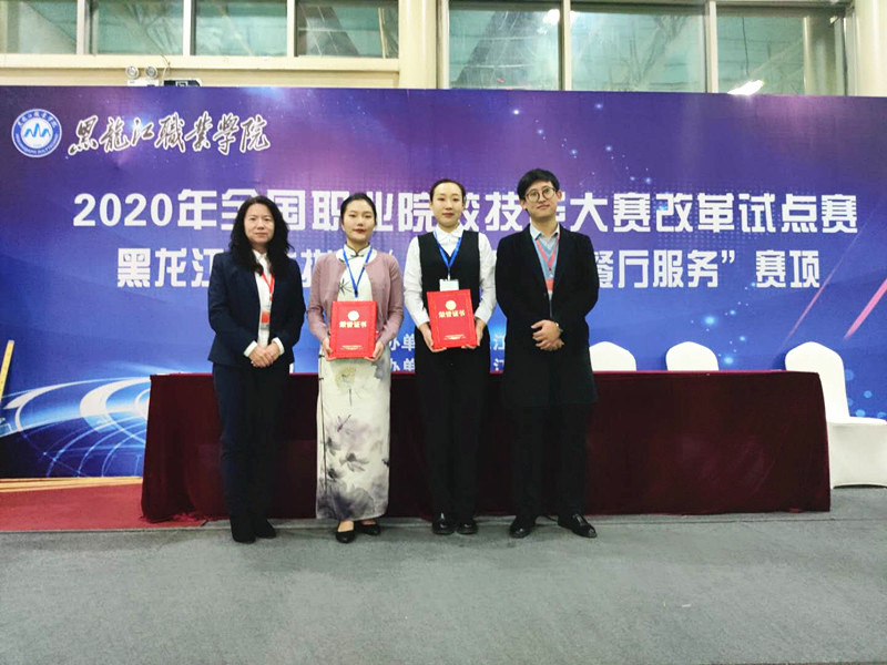 10月24日,由黑龙江省教育厅主办,我校承办的2020年全国职业院校技能大赛改革试点赛“餐厅服务”赛项黑龙江省选拔赛(高职组)圆满落下帷幕,来自全省六所高职院校12名参赛学生参加了比赛。我校参赛代表队在酒店管理专业教师谢芳、王迪带领下,参赛学生雷雨轩、冯瑞寒顽强拼搏、不负众望,在高手如云的赛场上,他们沉着冷静、敢打敢拼,凭借扎实的理论基础与高超的技能水平,荣获大赛一等奖,直接晋级国赛。学校校长王利文、旅游与人文艺术学院院长张玲、副院长李勇民出席大赛并为获奖选手颁奖。