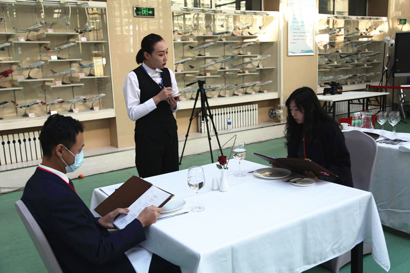 此次大赛包括西餐服务和中餐服务两个模块,特邀美国饭店协会大中华区经理时礼铭作为裁判长,经过全体裁判专家的认真评审,大赛共产生一等奖一名、二等奖一名、三等奖两名。在赛场上,参赛选手们精神饱满、技能娴熟、姿态优雅,充分展示了各院校酒店管理专业学生在主题宴会设计、鸡尾酒调制和休闲餐厅服务等方面的专业技能风采。