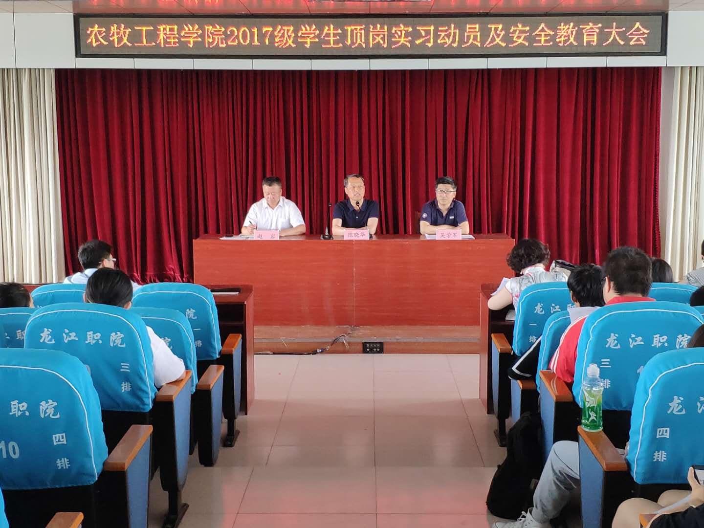 会上,吴学军首先对《关于印发黑龙江职业学院学生顶岗实习管理办法的通知》进行解读,明确了学生顶岗实习的意义,强调顶岗实习是教学过程的重要环节,可使在校学习的单项技能得到综合运用,为将来工作做好准备。他强调,顶岗实习时间共38周,要强化顶岗实习过程中的日常管理和考核过程管理。要求学生在顶岗实习开始前签订《顶岗实习协议书》,填写《黑龙江职业学院自主实习申请表》和《未满18周岁学生顶岗实习家长知情同意书》,并根据《职业学校学生实习管理规定》对实习准备、实习安排进行介绍。明确顶岗实习指导教师、辅导员、学生在顶岗实习工作中的角色。强调进行自主实习的学生,要加强对顶岗实习企业的调查了解,必须保证企业正规。没有明确实习单位的学生可与学院进行联系,学院负责推荐实习岗位和单位。冠名班的学生应坚守诚信,到签订协议的企业进行顶岗实习。他以猪生产、宠物诊疗与养护为例,在行程、生活、饮食、财务、操作、用电、生物等方面强调了注意人身安全的重要性。