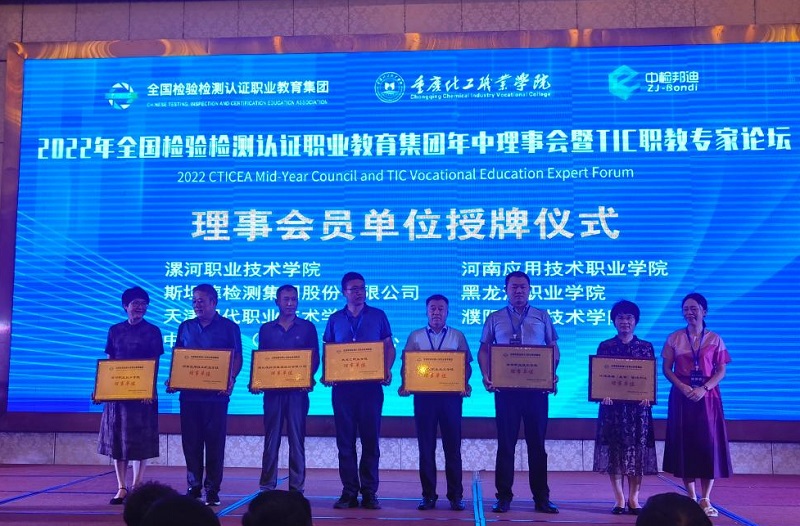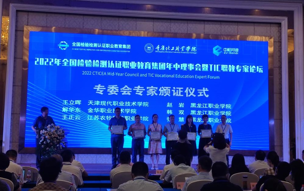 2022年全国检验检测认证职教集团年中理事会暨TIC职教专家论坛于8月5日在重庆召开,我校受邀参会并成为职教集团理事会员单位,食品药品学院院长赵岩、副院长韩双、教师张慧被聘为专家委员。