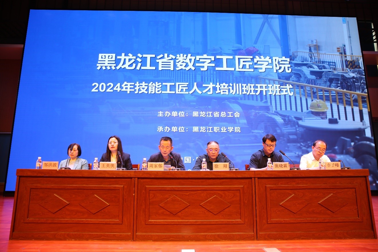 6月24日,黑龙江省数字工匠学院技能人才夏季培训班开班仪式在黑龙江职业学院学府礼堂正式开班。黑龙江职业学院党委副书记周家郁、省总工会劳动和经济工作部副部长徐翔出席会议,会议由黑龙江职业学院继续教育学院院长王英侠主持。