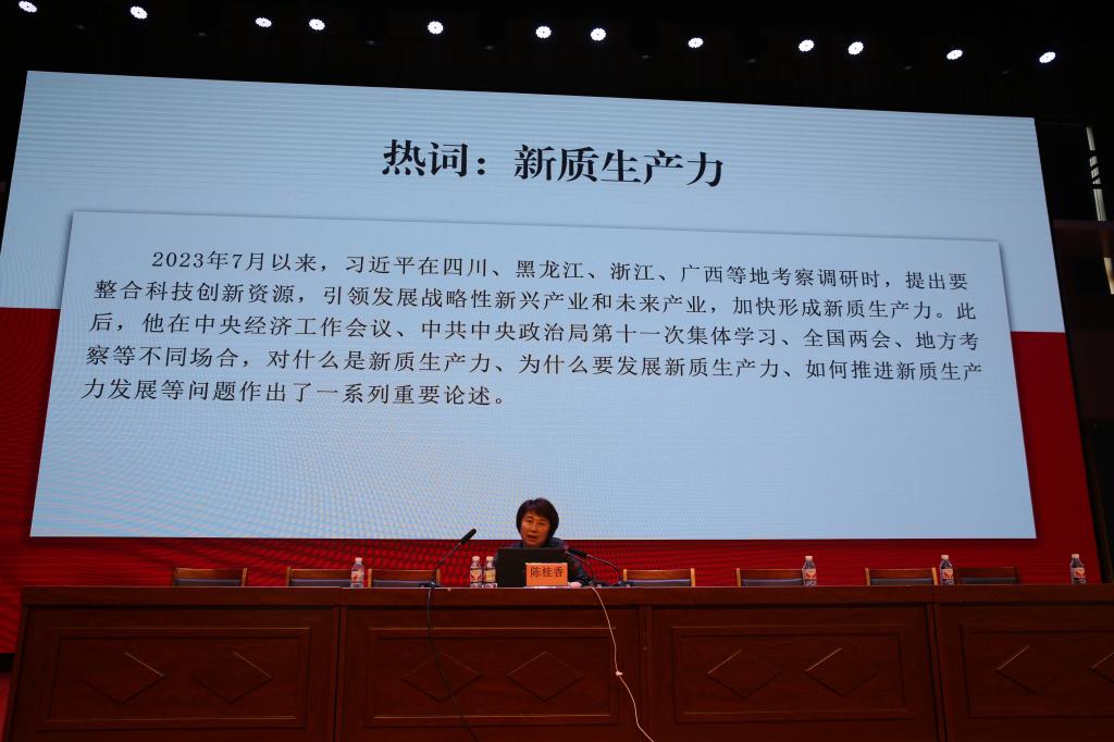 开班式后,培训班进行第一讲,由马克思主义学院院长陈桂香教授作题为《新质生产力的科学内涵和发展路径》的报告。