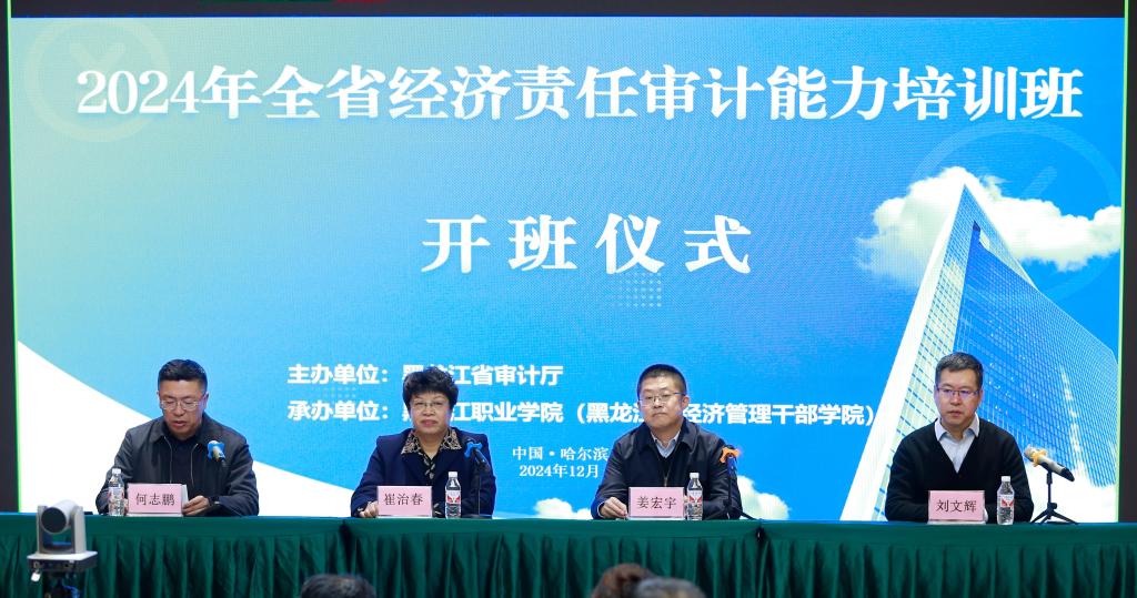 12月23日-25日,由黑龙江省审计厅主办、黑龙江职业学院(黑龙江省经济管理干部学院)承办的2024全省经济责任审计能力培训班在哈尔滨市成功举办。学校党委书记崔治春出席并讲话,副校长何志鹏主持开班式,黑龙江省审计厅副厅长姜宏宇做了首场讲课。来自黑龙江省市(地)局主管经济责任审计的副职领导,经济责任审计处(科)长700余人参加培训。
