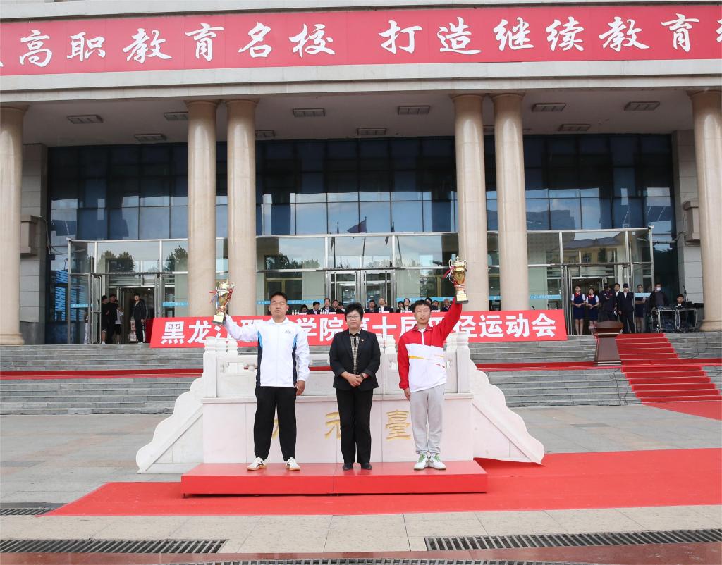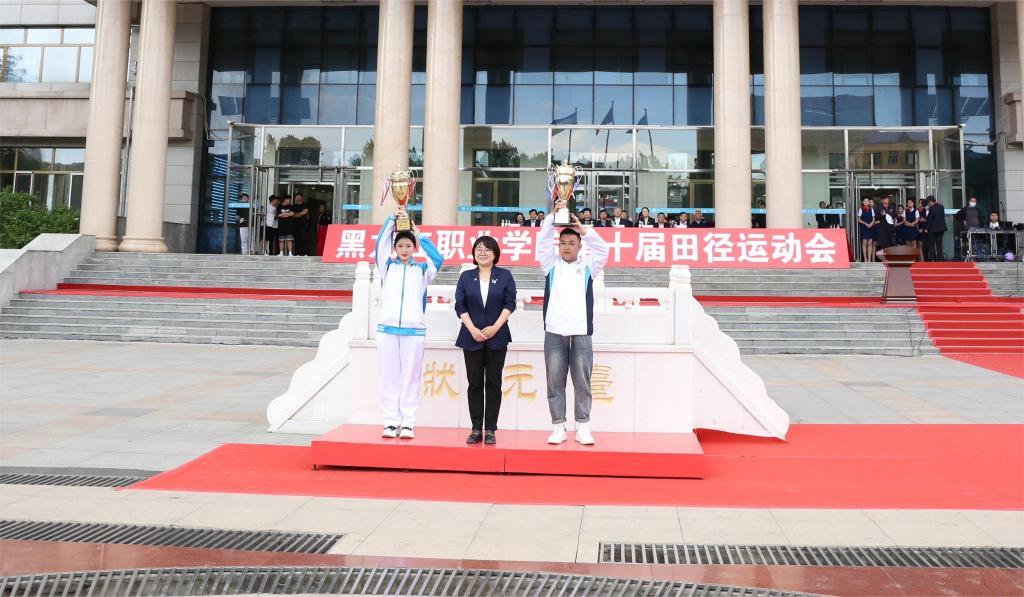 ▲党委委员、副校长吴艳秋为团体总分第一名颁奖