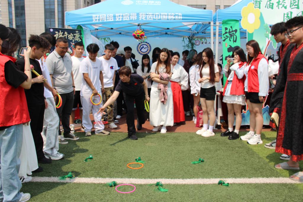 民俗互动区上演“非遗奇妙游”,师生们巧手编织五彩丝线、制作艾草香囊,在投壶竞技与射五毒游戏中触摸千年民俗记忆,身着汉服的学生穿梭其间,重现古时端午盛景;传统文化知识竞答区掀起“最强大脑”风暴,学生们争相抢答诗词歌赋、历史典故及民俗风情类题目;文艺展演区琴韵悠扬,霓裳翩跹、国风新声绕梁而歌。学子们以青春姿态诠释传统文化新魅力。