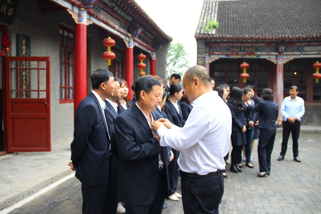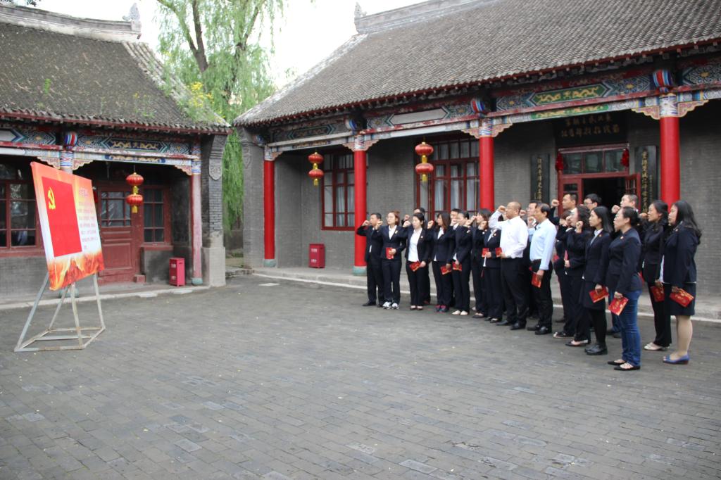 参观后,在指挥部的院落里,学院党总支书记孔繁海,院长、党总支副书记彭秋艳为全体党员佩戴党徽,发放政治生日贺卡,并集体重温入党誓词,让此次主题党日活动更有意义更有价值!