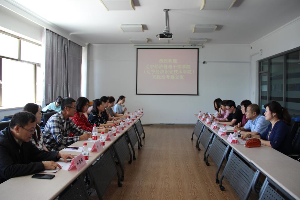 6月21日,辽宁经济管理干部学院通识教学部党总支书记杨敏一行九人到我校考察交流,通识教育学院党总支书记孔繁海、院长彭秋艳带领中文和外语教研室主任等人陪同参观了学校计算机实训室并组织召开双方见面会。