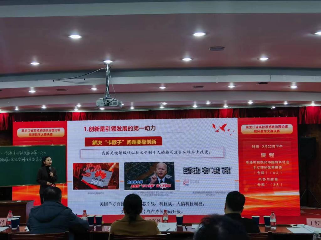 2月22日,由省教育厅主办的2022年全省高校思政课教师教学大赛落下帷幕。来自全省高校的60名优秀思政课教师同台竞技,一展风采。经过激烈角逐,马克思主义学院秦晶娟、康帅、杨凯三名青年教师技压群英、力挫群雄,最终斩获一等奖三项。秦晶娟荣获毛泽东思想和中国特色社会主义理论体系概论课第一名、康帅荣获形势与政策课第一名、杨凯荣获习近平新时代中国特色社会主义思想概论课第一名,为打造龙职思政课教师品牌再添光彩。