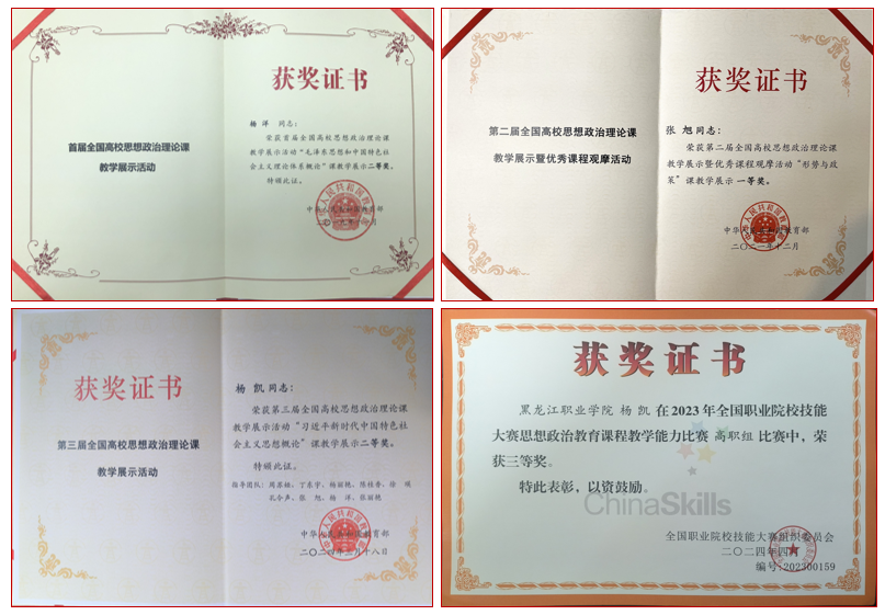 成果鉴行,彰显大思政课成效。学院教师连续5年悉心指导学生参加各类比赛,斩获累累硕果。获教育部奖项9项、省级奖项8项、优秀组织奖1项。培养了一批批理想信念坚定、人格健全、具有家国情怀、有责任担当的优秀学生,在各自的岗位上践行工匠精神,贡献自己的青春热血,彰显龙职学生“自强有为、兴业报国”的志向与担当,为社会进步注入源源不断的活力与希望。