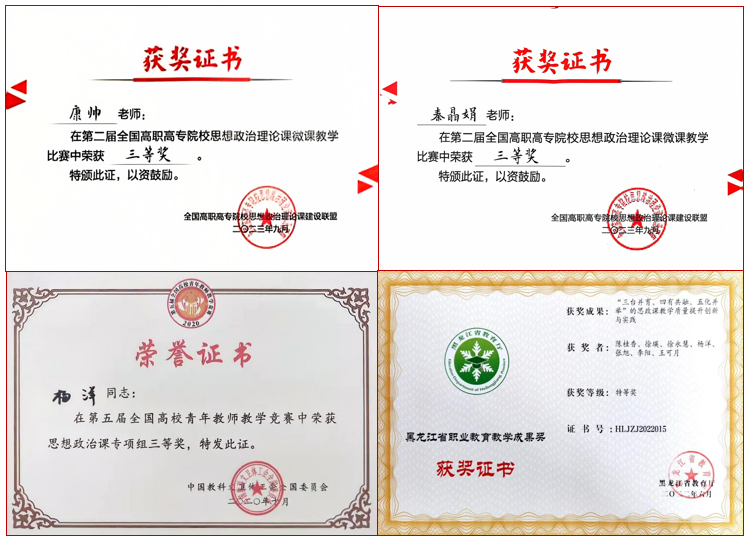 信念为磐,锻造忠诚之师。学院夯实党建工作,抓好基层党组织建设,坚持不懈用习近平新时代中国特色社会主义思想武装头脑,补足精神之钙。引导教师提高“政治三力”,绷紧意识形态之弦;引导教师用“四有”好老师、“四个引路人”“四个相统一”“六要”标准检视自己,躬耕教坛,践行使命,修身修为,弘扬主旋律,传播正能量。马克思主义学院现有省级思政课名师工作室1个,省级教学名师1名,省级优秀教师2名,校级师德先进个人5名,师德先进集体2个,优秀教师3名,优秀共产党员11名,2024年获省级师德先进集体荣誉称号,以优异的成绩成功入选黑龙江省首批高等职业学校特色马克思主义学院。