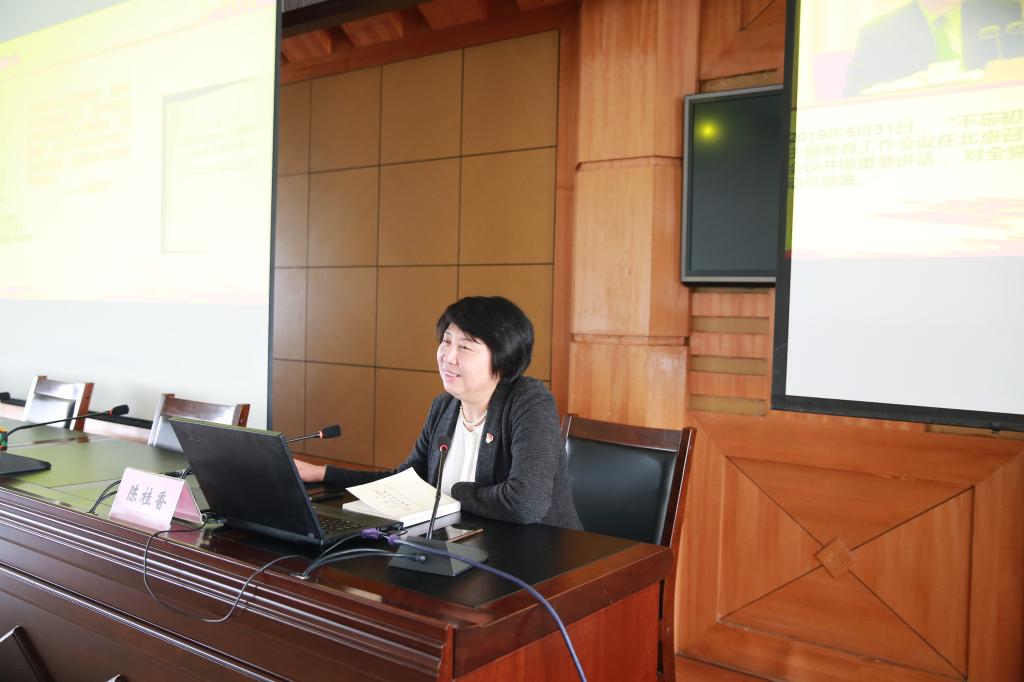 10月13日,学校思政教研部主任陈桂香教授在省委教育工委高校党支部书记培训班上以“习近平新时代中国特色社会主义思想承载着共产党人的初心和使命”对《习近平关于“不忘初心、牢记使命”重要论述选编》进行辅导。陈桂香从“党的旗帜映照着初心使命、习近平新时代中国特色社会主义思想承载着初心使命、共和国发展召唤初心使命、他国共产党失败的教训警醒初心使命”四个方面进行阐释。从党的指导思想、党的几代领导人的精神内核无一不集中体现着共产党人的初心使命,到百年来,一代代仁人志士流血牺牲、无私奉献无一不诠释着共产党人的初心和使命,从百年未有之大变局、“两个一百年”奋斗目标,党面临前所未有的考验和危险。辅导有理有据,有血有肉,历史的事实和鲜活的事例,让同志们深入触动和感染,理论学习有收获,思想政治受洗礼,深刻理解了主题教育重大而深远的意义。