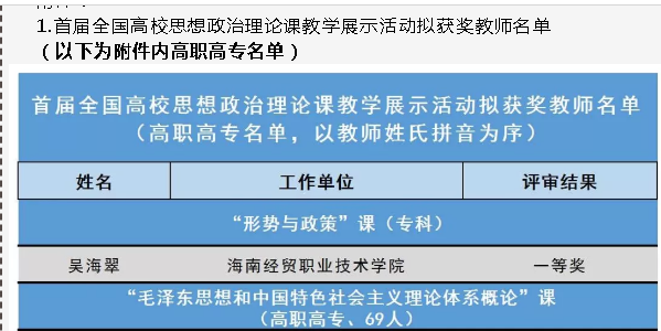 为贯彻习近平总书记在全国学校思政课教师座谈会上讲话精神,充分发挥思政课的立德树人关键作用,2019年6月,教育部首次开展全国高校思想政治理论课教师教学展示活动,我校思想政治教研部教师杨洋在教学展示中荣获二等奖。