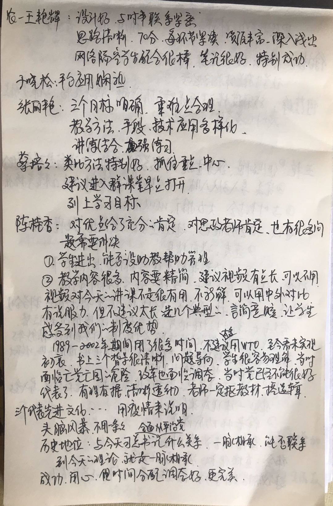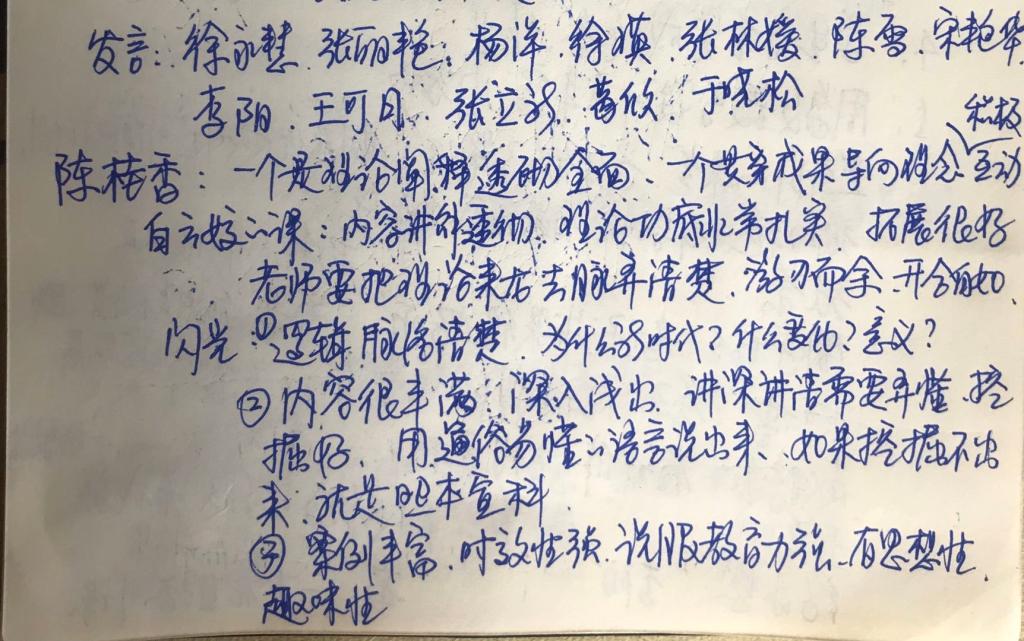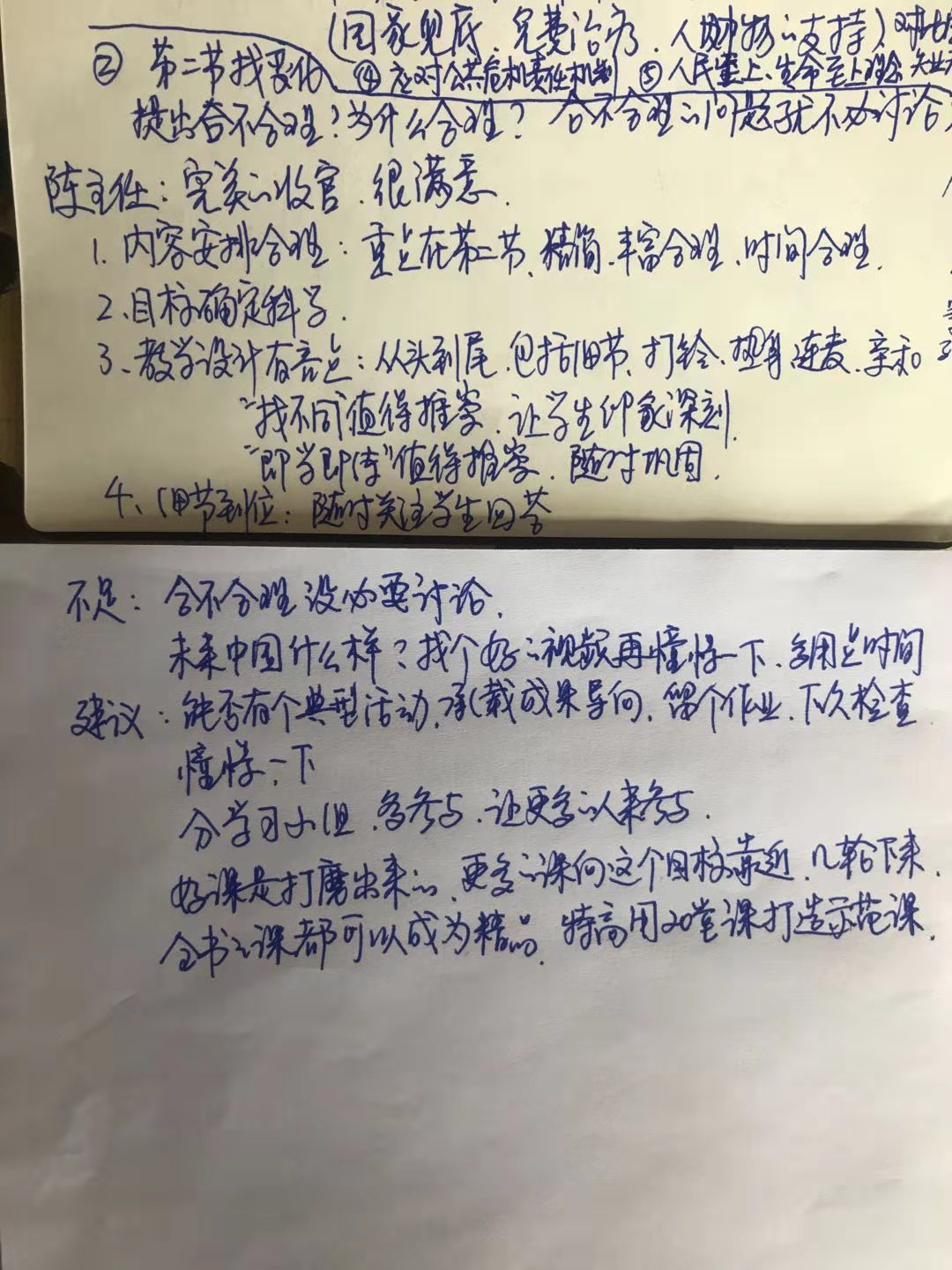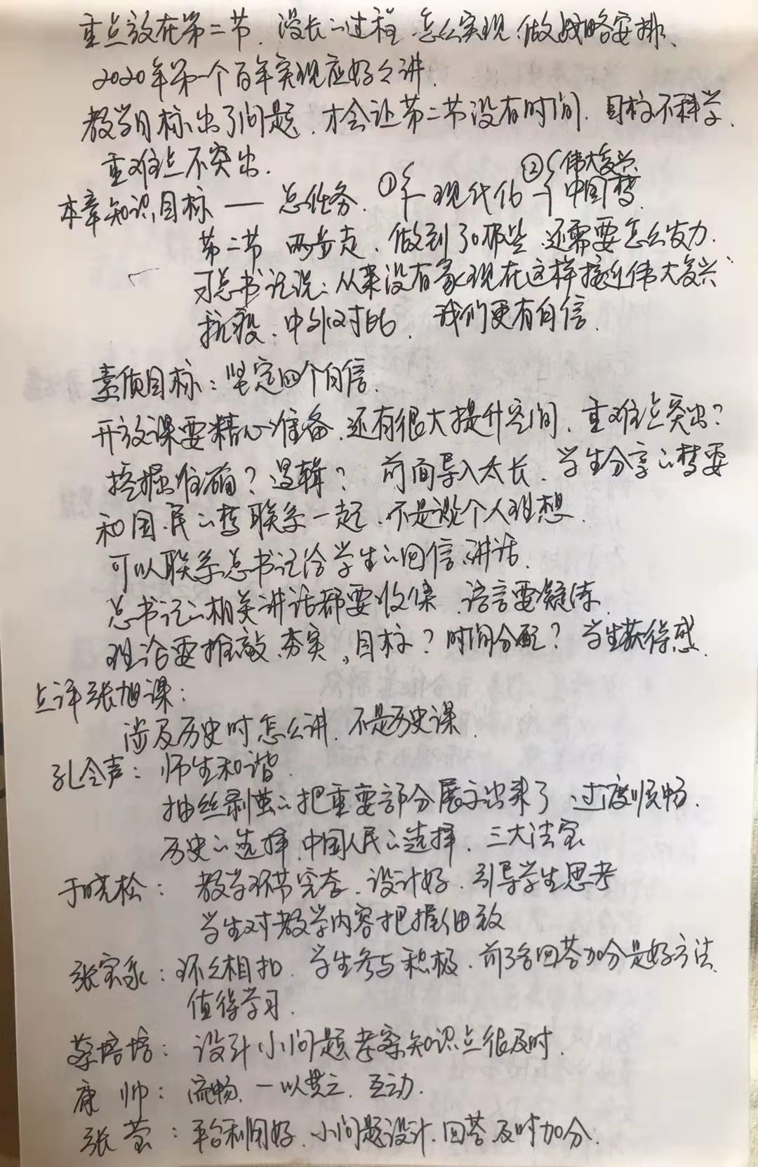 高思想认同,形成动力。29次集体备课,10个小时集体听课,15个小时集体评课,占用了教师很多业余时间,增加了工作的强度和长度,但所有教师都高度自觉、热情参与,积极发言。表示这样示范、解剖和评价的以案说教,对于每位教师提升教学能力水平具有非同寻常的意义,欢迎继续推进此类教学活动,不断提升自己教学能力水平,做学生健康成长的指导者和引路人,为培养担当民族复兴大任的时代新人做出应有的贡献。