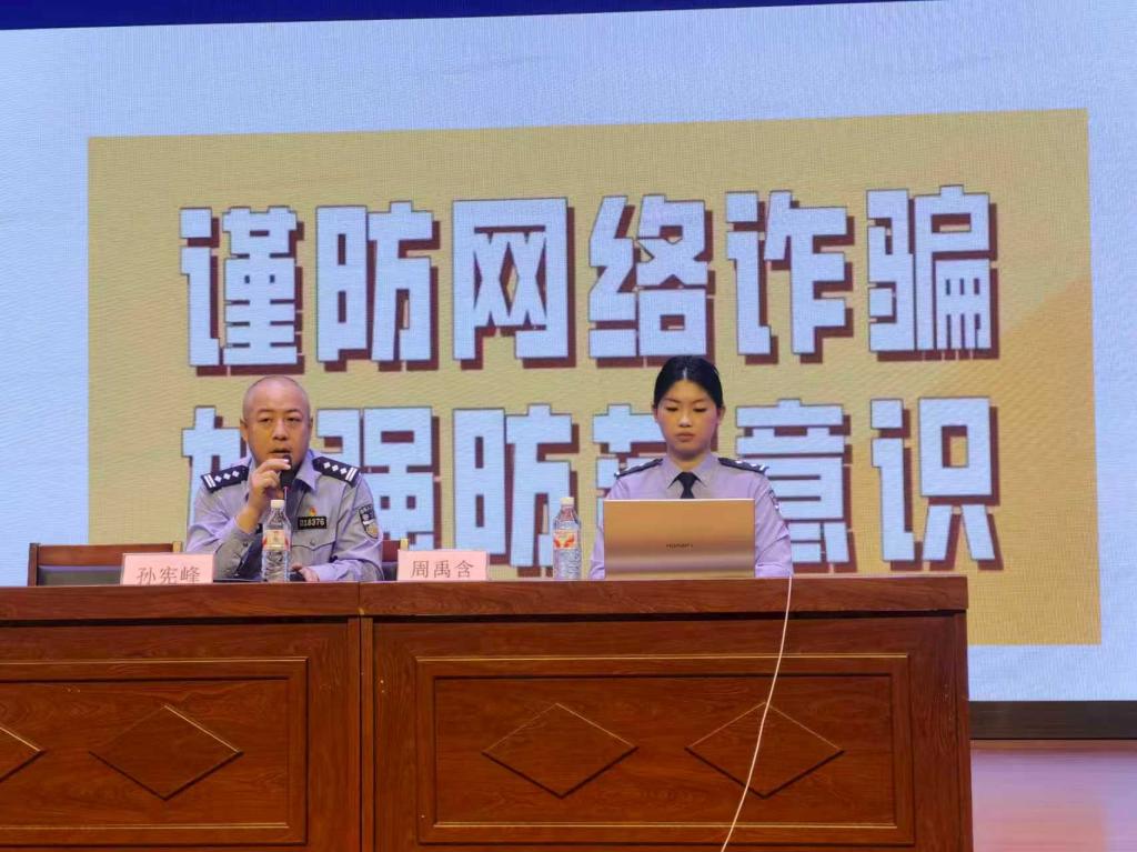 孙宪峰结合真实案例作反诈提示,呼吁全体学生安装“国家反诈中心”APP并开启预警功能,遇可疑情况立即拨打96110核实。他提醒学生,诈骗本质是利用人们贪利心理,大家要牢记“不轻信、不转账、不透露验证码”三大原则,谨防受骗。