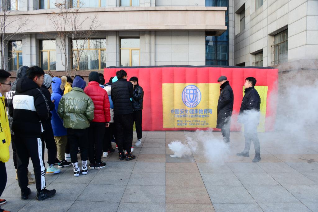 “119”消防日,保卫干警在校园内悬挂安全条幅,发放宣传单,在清华楼大厅设立消防器材及安全常识展板,现场解答安全知识。二校区举办了消防志愿者成立启动仪式,由400名大学生组成的消防志愿者团队,作为日常宣传普及消防知识的传播者。11月14日,对教职工进行消防安全知识专题讲座。并在操场搭建“逃生屋”模拟家居生活发生火灾时的场景,副校长郑福贵、保卫处处长周万举带领师生们进入浓烟强烈的逃生屋,在漆黑的室内通过层层障碍,按着指示牌的方向,弯下身子,捂住口鼻,依次从逃生口安全逃出。通过亲身体验火灾现场和在光线黑暗的环境中逃生和疏散的全过程,使教职工和学生们对火灾产生了畏惧心理,提高了消防安全防范意识。