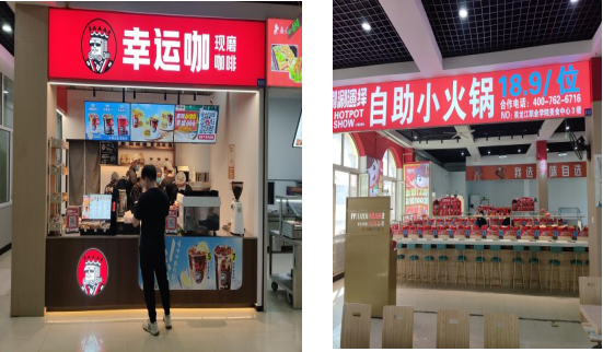 更新环境优质服务师生。本学期,第一校区饮食中心加装了室外电梯,以方便师生用餐。为满足学生不同口味需求,两校区饮食中心对档口进行了相应调整,引进幸运咖、旋转自选小火锅等品牌的加盟,增加铁锅炖、水煮肉片、牛窝骨等特色档口,调整基本大伙的菜品样式,在第一校区饮食中心四楼设有地方小吃和免费娱乐休闲区。
