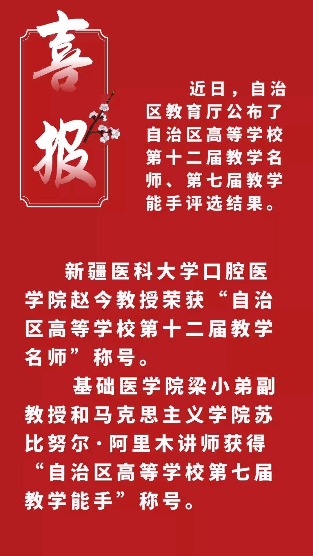 教育大计,教师为本。新疆医科大学将进一步引导广大教师坚定理想信念,用胡杨精神育人、为兴疆固边服务,将为党育人、为国育才落到实处。希望全体教职员工以教学名师、教学能手为榜样,坚守教育初心,潜心教书育人,坚持立德树人,积极投身教育教学改革实践,为建设高质量新疆医科大学、培养高素质医学人才做出更大的贡献!