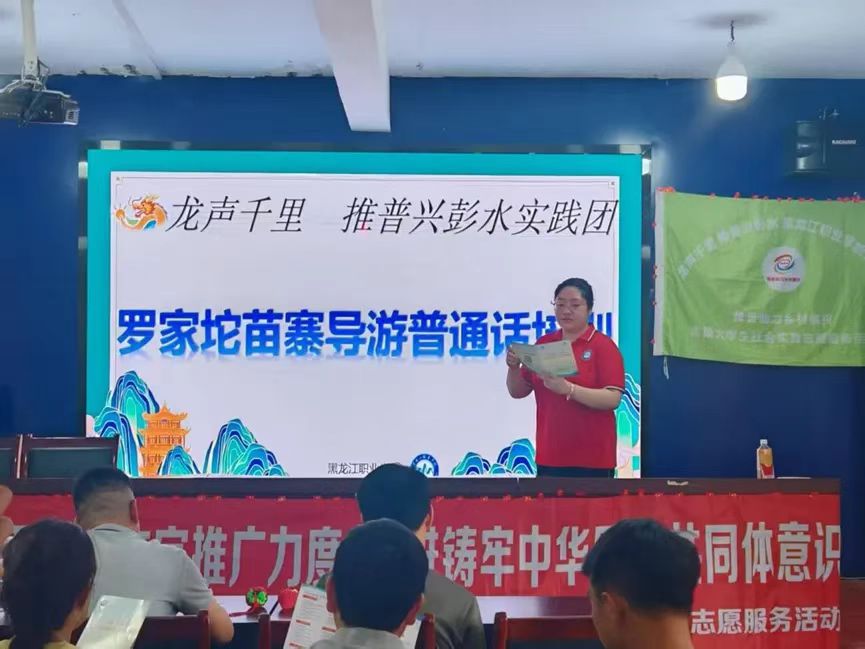 2025年暑期,黑龙江职业学院“龙声千里 推普兴彭水”实践团作为教育部与团中央联合遴选的全国2000支大学生暑期社会实践志愿服务队之一,跨越3000公里深入彭水苗族土家族自治县,以“推普+五维融合”模式,将普通话推广融入“民族共同体”“文旅发展”“文化振兴”“数字技术”“红色教育”发展路径,开展了为期10天的实践活动。团队用青春足迹绘就“语通、业兴、文传、心聚”的振兴画卷,并获共青团彭水县委致信表彰——“创新模式为民族地区推普工作树立标杆!”