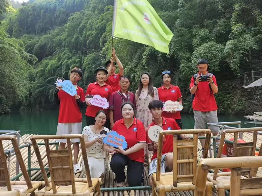 7月11日,黑龙江职业学院旗帜招展。7名成员在赵宇迪、阚男男两位教师带领下宣誓,以“需求导向、融合创新、可持续发展”为实践准则,成员们发出铿锵誓言:“用脚步丈量彭水山水,用声音激活乡村振兴!”