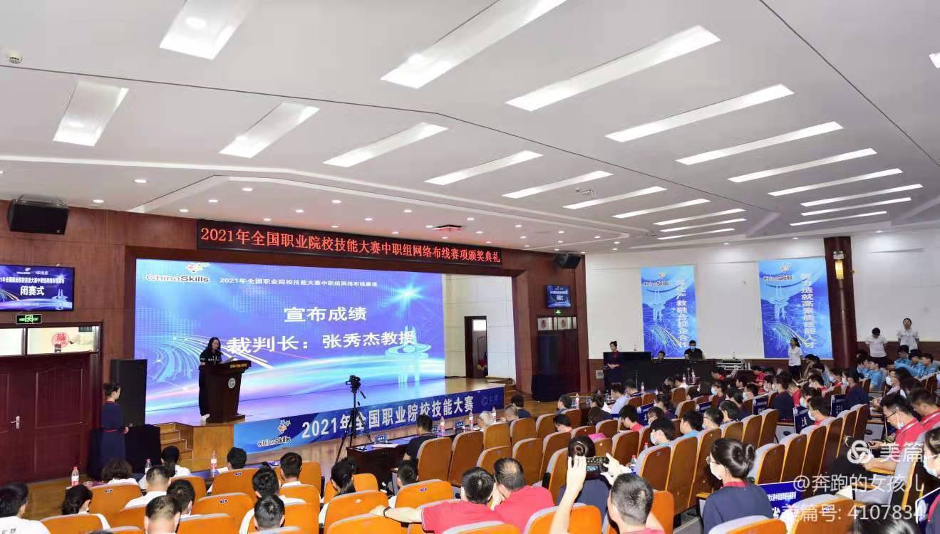 图10 张秀杰宣布全国职业院校技能大赛“网络布线”比赛成绩现场照