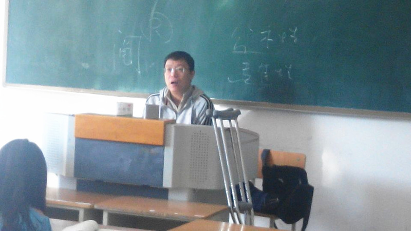 本学期开学初,葛欣老师右脚脚踝骨骨折,脚上绑着石膏,胳膊拄着双拐,依旧坚持站在一二校区的讲台上。葛欣老师作为法律教学团队带头人,一直承担着团队里最多的课时工作量,再加上这学期的课程有近一半在第二校区,所以,他每周都至少有两天要拄着双拐起早坐通勤车赶往第二校区上课,一周五天工作日没有一天是可以在家休息的。医生一直建议葛欣老师躺在床上静养,但他总是说:“在家休息,不上课,我的那些学生怎么办?我放心不下他们。”就这样,葛欣老师坚持拄着双拐到班级,同学们总会争相给他搬来椅子,帮他放好双拐,下课后,还会送他到下一个上课班级。由于长时间行走和站立,使受伤的右脚格外肿痛,但他总说没事,坚持一下就好了。同学们总会开玩笑地说:“葛欣老师虽然受伤了,但也不影响他在我们心中的高大形象!”葛欣老师放心不下他的学生,他喜爱课堂,他忠于讲台,他的学生们也敬重他。