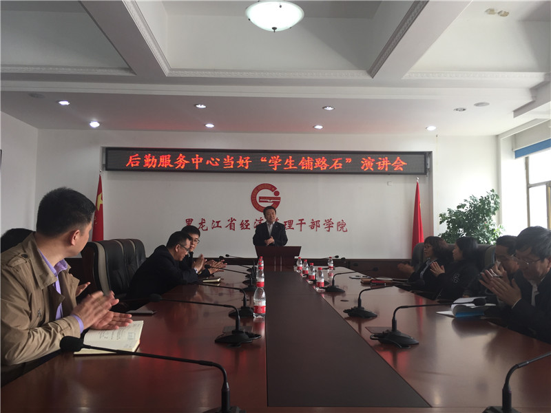 近日,后勤服务中心组织召开“当好学生的铺路石”演讲会,副校长郑福贵,组织部孟繁荣和邹煜音参加演讲活动。