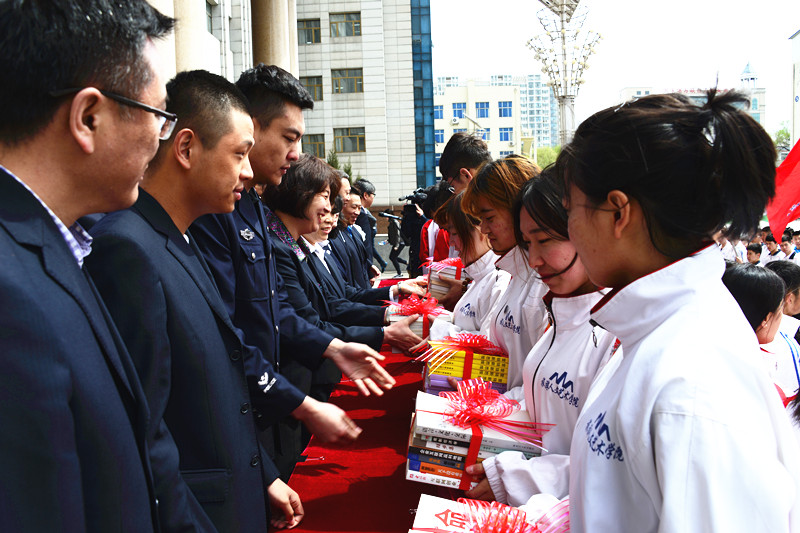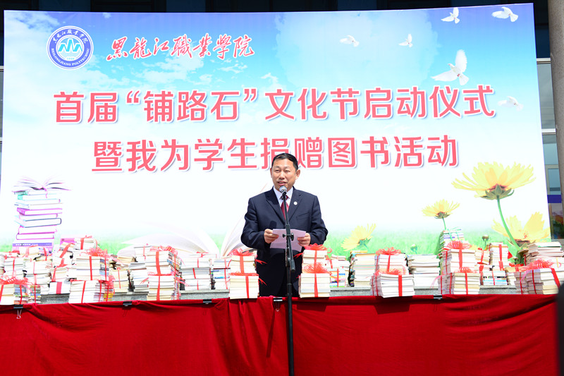在启动仪式上,院领导和各部门代表为学生赠送了图书。初步统计,全院教职工捐书共计2671册。这些图书将摆放在学生公寓自习室,用于学生业余文化生活。这是学院教职工践行“我们是学生铺路石”核心价值观的具体行动,为学院首届“铺路石”文化节揭开了序幕。