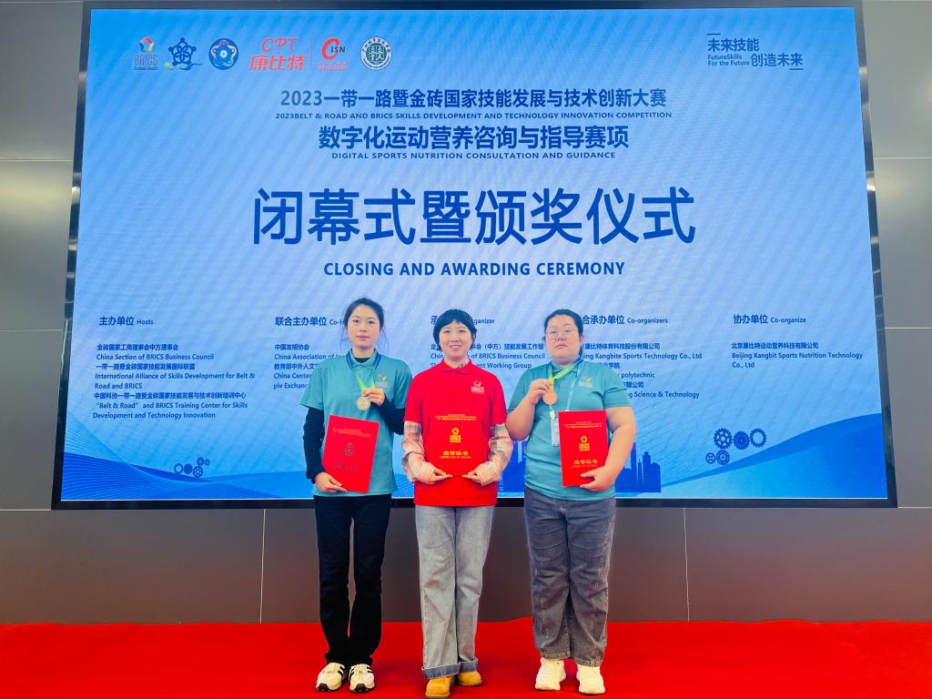 3月1日,“一带一路”暨金砖国家技能发展与技术创新大赛首届“数字化运动营养咨询与指导”赛项全国决赛在广州城市职业学院圆满落下帷幕,来自全国23个省、自治区、直辖市的42所院校,196支队伍参加决赛。我校张慧老师指导的学生胡新苹获高职组个人赛二等奖、崔畅获职工组个人赛三等奖,学校被授予优秀组织奖。