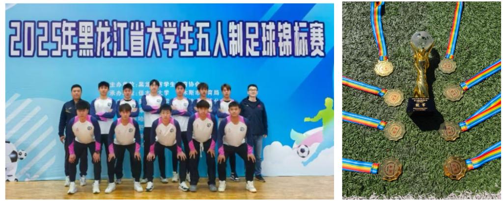 近日,首届2025年黑龙江省大学生五人制足球锦标赛在佳木斯市开幕,我校足球队勇夺(丙组)桂冠。