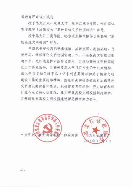 近日,省直机关工委、省委高校工委分别命名我校为“省直文明单位标兵”和“高校系统文明校园标兵”荣誉称号。这是近年来学校党委全面加强名校强校建设的重要体现,是学校党委高度重视党的建设、精神文明建设的重要标志,是全校广大党员干部、教职工开展群众性文明创建活动的重要成果。