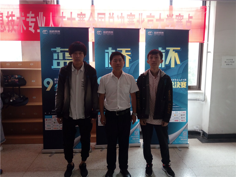 5月26日,第九届 “蓝桥杯”全国软件和信息技术专业人才大赛决赛在北京大学展开,来自全国30多个省份的近万名优秀学生参加大赛。我校信息工程学院赵正道老师带领2名学生参赛,经过4个小时激烈角逐,软件技术16-01班杨金澎荣获Java软件开发赛项三等奖,软件技术16-03班周德龙获得C++程序设计赛项优秀奖。