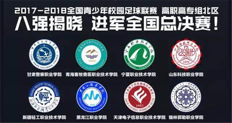 6月4——11日,2017-2018全国青少年校园足球联赛(男子高职高专组)顺利举行。我校男子足球队以北区第五名的优异成绩成功晋级全国总决赛,取得历史性突破,创下了历史最佳战绩。