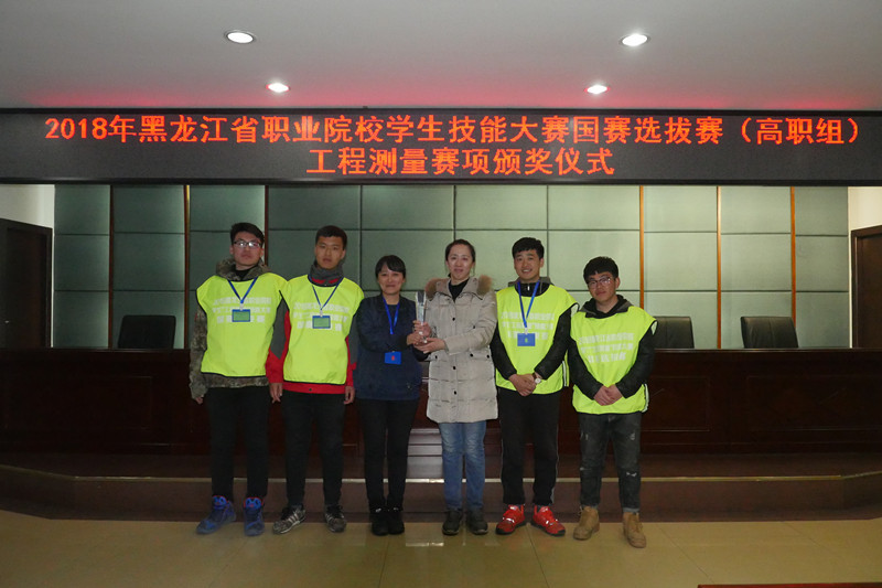 4月15日,2018年黑龙江省职业院校学生技能大赛国赛选拔赛(高职组)成功举办。我校景铎和李秀凤作为指导教师,建筑工程技术专业学生丛永祥、于长生、董志强、孙泽琛组成的代表队参赛,经过一天的紧张激烈角逐,最终以总分96.5分获得第一名的优异成绩;蝉联该赛项全省冠军,成功挺进国赛。
