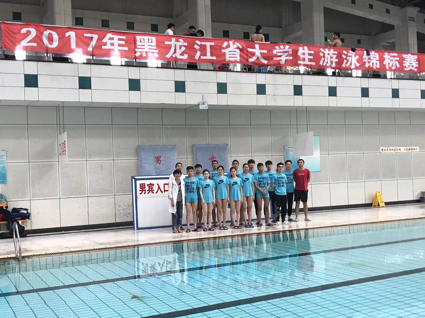 碧水泳坛,捷报频传。2019年7月黑龙江省第十七届学生运动会大学生游泳比赛,我校游泳队以团体总分283分的骄人战绩成功卫冕大运会游泳比赛高职组冠军。其中,我校2018级机械工程学院武文豪同学还以25秒77的成绩打破大运会男子本科组50米自由泳记录。2013年至2016年,我校游泳队在省赛中,以绝对优势实现了黑龙江省大学生游泳锦标赛高职高专组的“三连冠”!