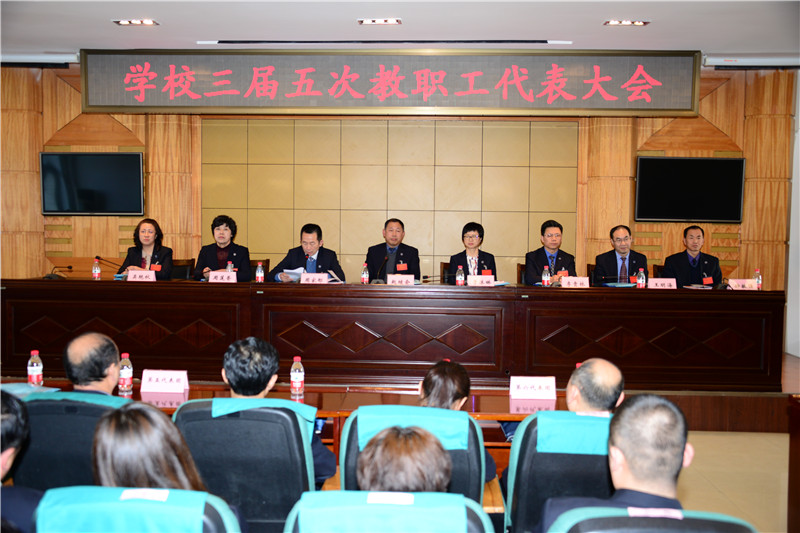 4月11日13:30,学校三届五次教职工代表大会胜利开幕。学校党政领导、全体代表、列席代表参加大会。大会由党委副书记周家郁主持。