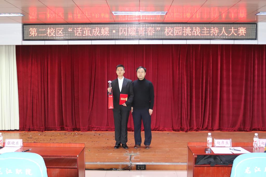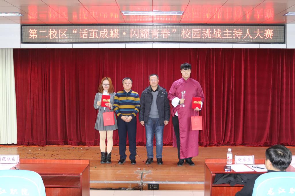 11月27日,由黑龙江职业学院第二校区学工部主办,校新媒体中心承办的“话茧成蝶,闪耀青春”挑战主持人大赛成功举行。学工部副部长赵彦生、各二级学院学工副院长、团总支书记参加活动,大赛邀请具有专长的教师、犸林文化有限公司代表共计7人组成评委团,与240余名观众共同欣赏了选手们的精彩表现。