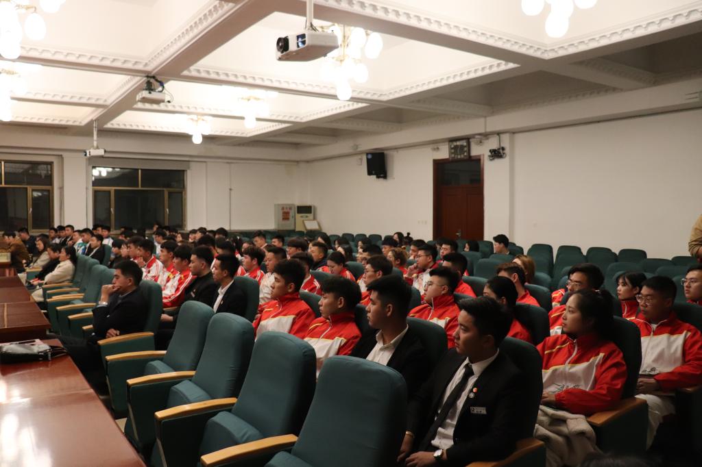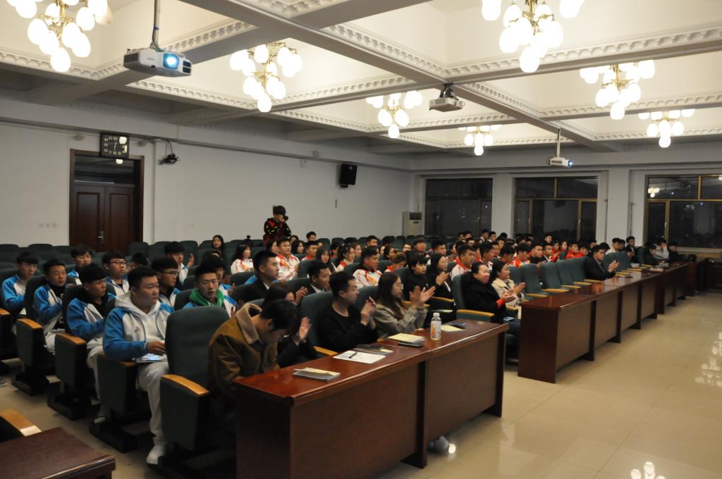 10月28日,由学工部(团委)组织主办的2019级学生晚课“国学诵读”专题培训班成功举办。建筑工程学院党总支书记、国学教育工作室负责人程刚应邀为2019级所有大一班长和年级辅导员近200名师生作专题培训,二校区同步视频收听收看本次培训。培训班由学工部副部长、校团委书记邹春雷主持。